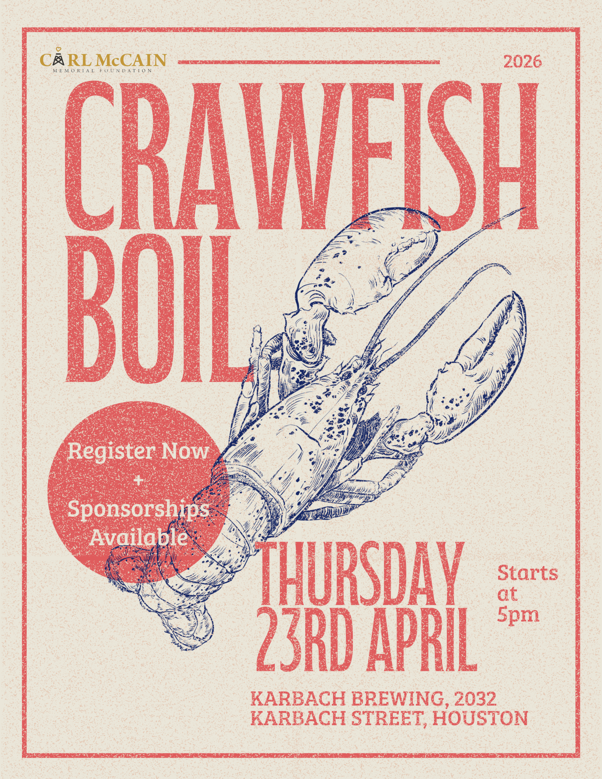 Karbach Brewery 2032 Karbach St, Houston, TexasPlease join us Thursday, April 23 at Karbach Brewing Company from 5:00 - 9:00 pm. Capacity is limited and registration will close after 1,100 guests sign up, so don't delay! Pre-registration attendance only; registration closes Wednesday, April 22 $150 per person donation to The Carl McCain Memorial Foundation. Entry donation includes all the crawfish, […]